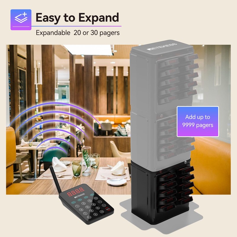 - Automatic pairing; you can easily pair the entire set number without extra settings are needed; new experience wireless pager system your guests feel more connected while they wait to be seated or for their turn for service