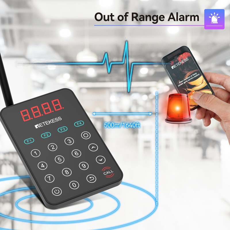 Retekess TD177 Restaurant Pager, Pager System Long Range, New Experience, Out of Range Alarm, Close Reminder, 10 Rugged Beepers for Food Truck, Coffee Shop