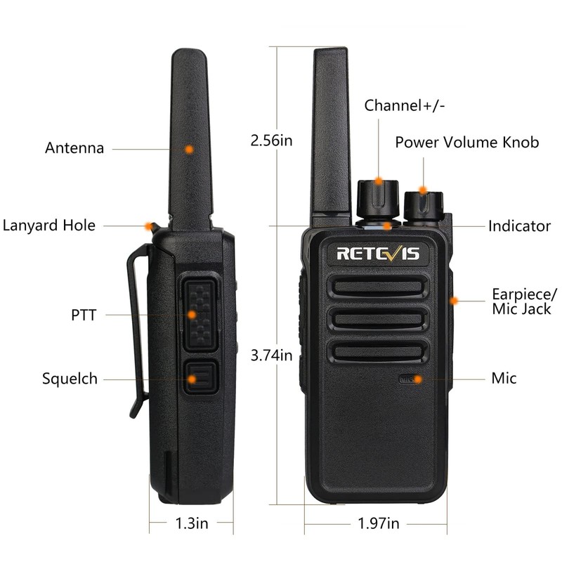 - Wider compatibility; RT68 walkie talkie can work with other FRS radios with 16 channels on the same channel and CTCSS; such as Retevis RT22 RT21 H-777etc