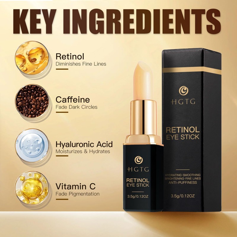 Retinol Eye Stick, Retinol Eye Cream, Anti-Aging Eye Cream for Wrinkles, Dark Circles, Puffiness & Bags Reduces Fine Lines Under Eyes 3.5g