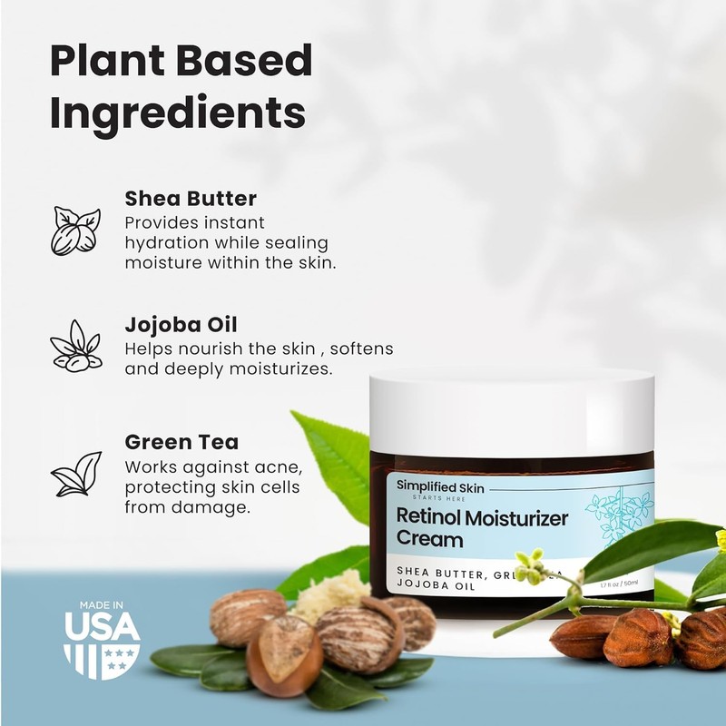 Simplified Skin Retinol Moisturizer Cream 2.5% for Face & Eye Area with Vitamin E & Hyaluronic Acid for Anti Aging, Wrinkles - Best Night & Day Facial Cream 1.7 oz.