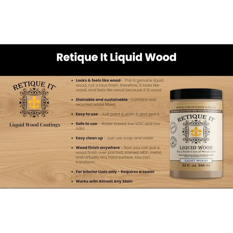 Retique It New and Improved Formula Liquid Wood Coatings - Stainable Primer - Paint It then Stain it (Light Wood, Medium)