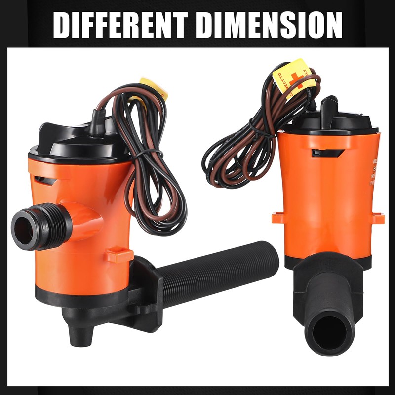 - Safe and Submersible: the livewell pump is fully submersible and is secured with tinned 18-gauge wire; The length of the 90-degree threaded air inlet is 125 mm, including 2 different outlet hose tail configurations, straight and 90 degrees