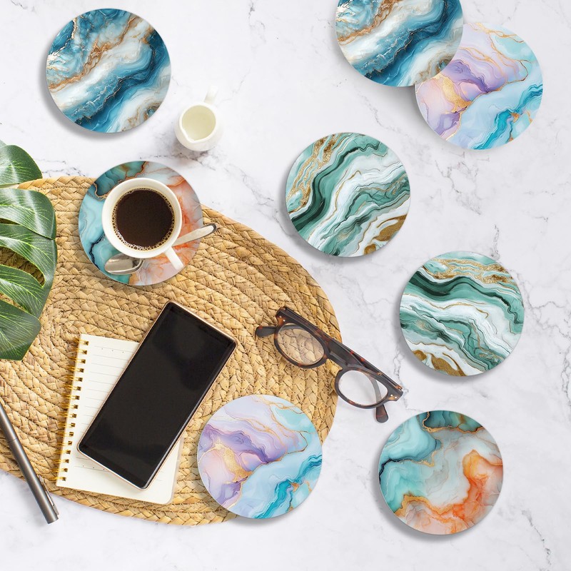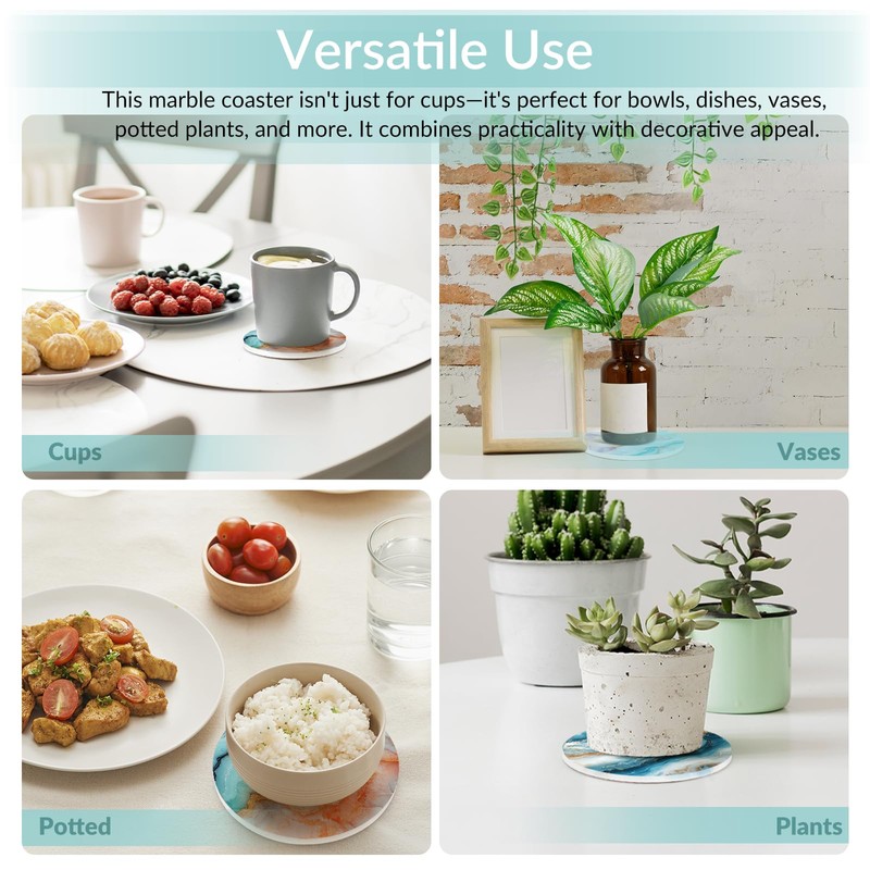 Artistic Craftsmanship: Each marble cup coaster is meticulously designed to capture the essence of nature. The unique patterns are not just colors—they are works of art that bring a touch of luxury to your table.