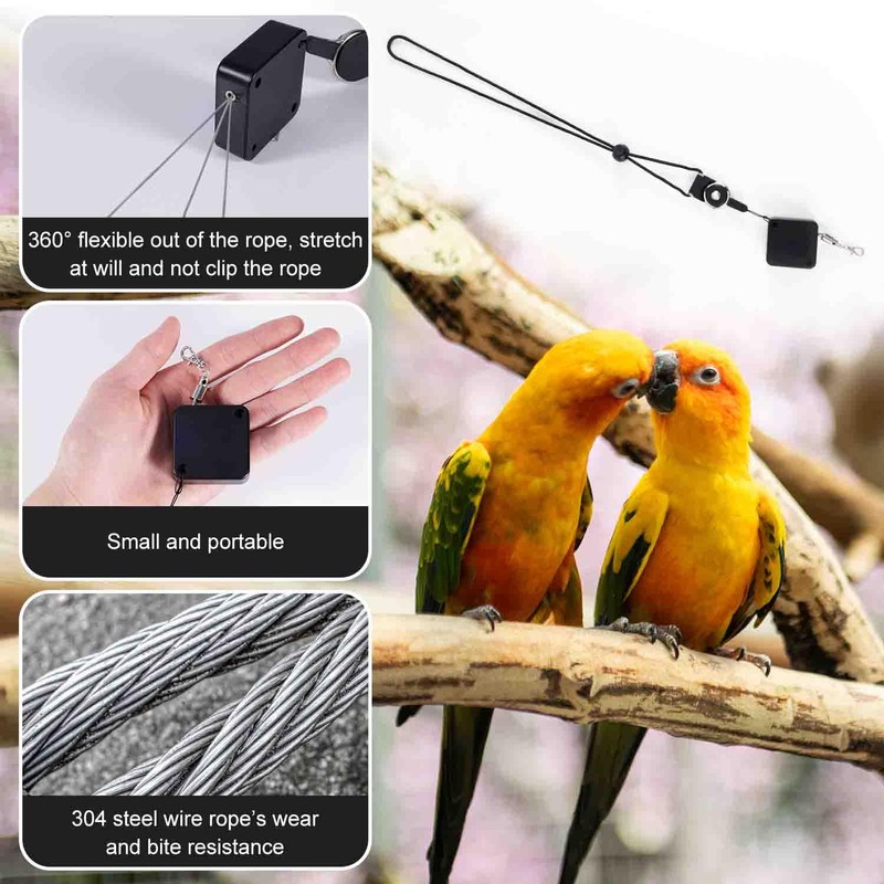 - Retractable Bird Leash: Our bird flying harness has a certain pulling force, and it will automatically pop out after being subjected to external force, so it has a buffering effect. When the bird suddenly gets scared to fly away, it will protect the bird' feet from being torn off under the buffering.
