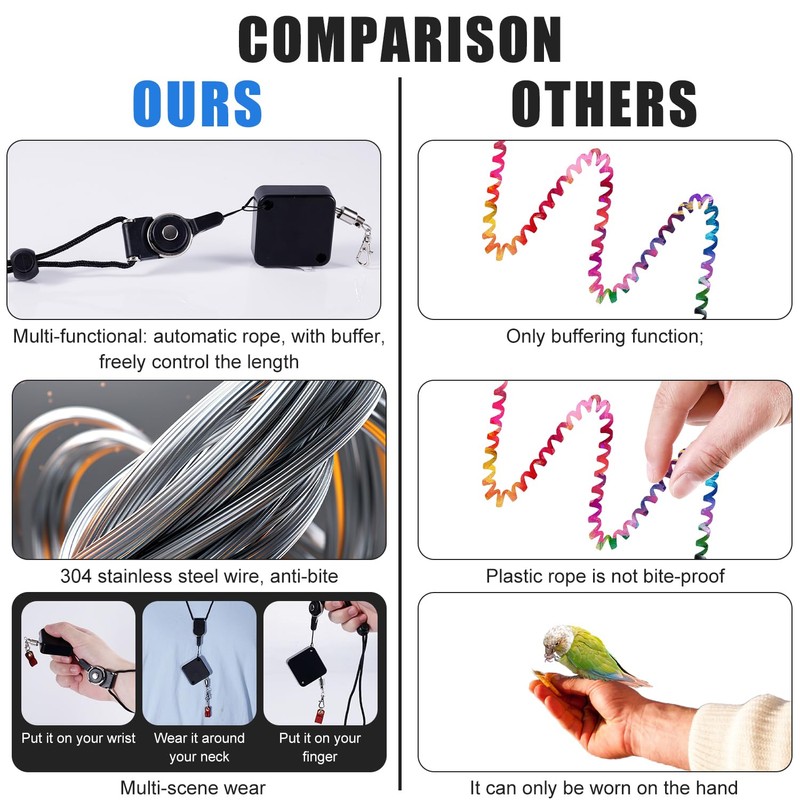 - Easy to Use: Equipped with various safety hooks, it's easy to install this bird harness. It can be worn on your wrist, finger, or around your neck, and is adjustable and portable.