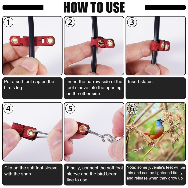 - Wide Application: Our bird leash can be widely used and is suitable for budgies, cockatiels, green-cheeked parrots, crested mynahs, magpies, red-billed choughs and more. Please choose the proper size of foot rings as needed.