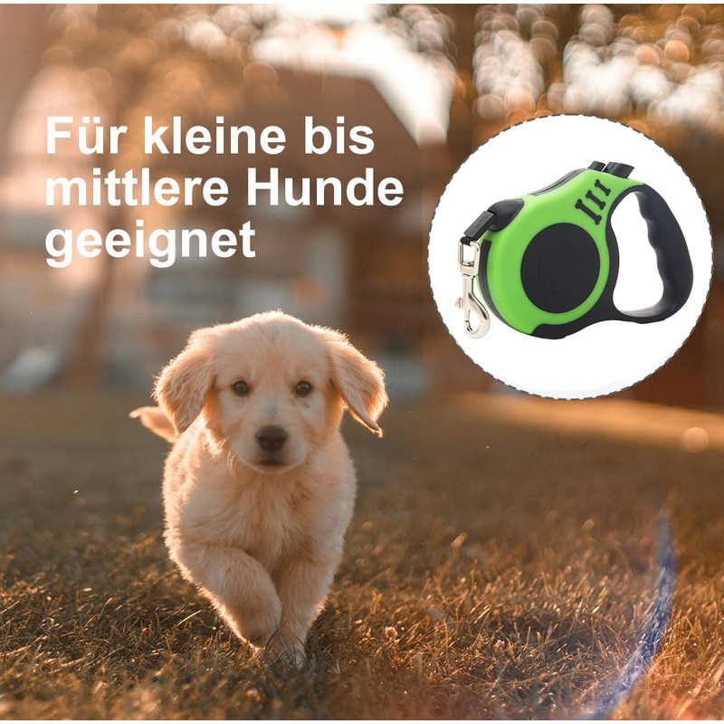 Retractable Dog Lead, Small Dog, Roller Leads, Non-Slip Handle with Brake, 5 Metres, Green