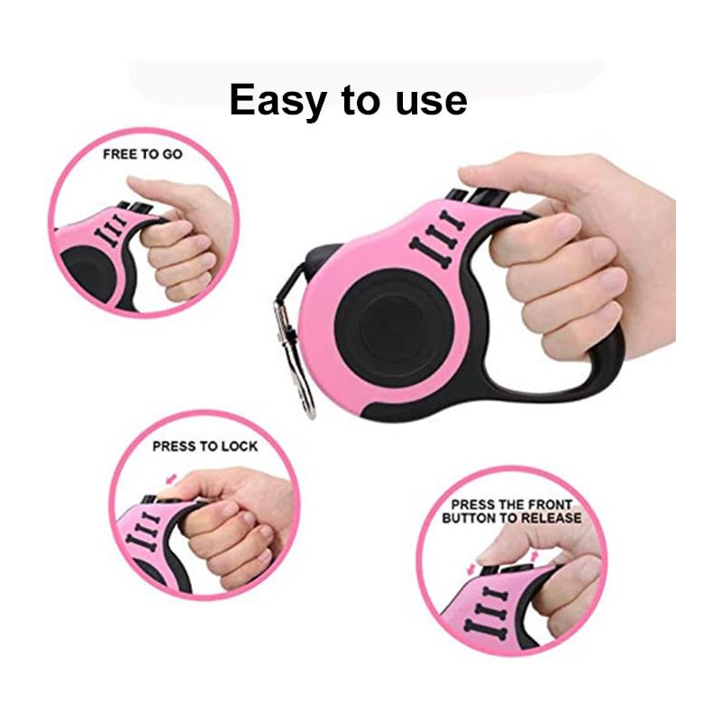 Retractable Dog Lead, Small Dog, Roller Leads, Non-Slip Handle with Brake, 5 ...