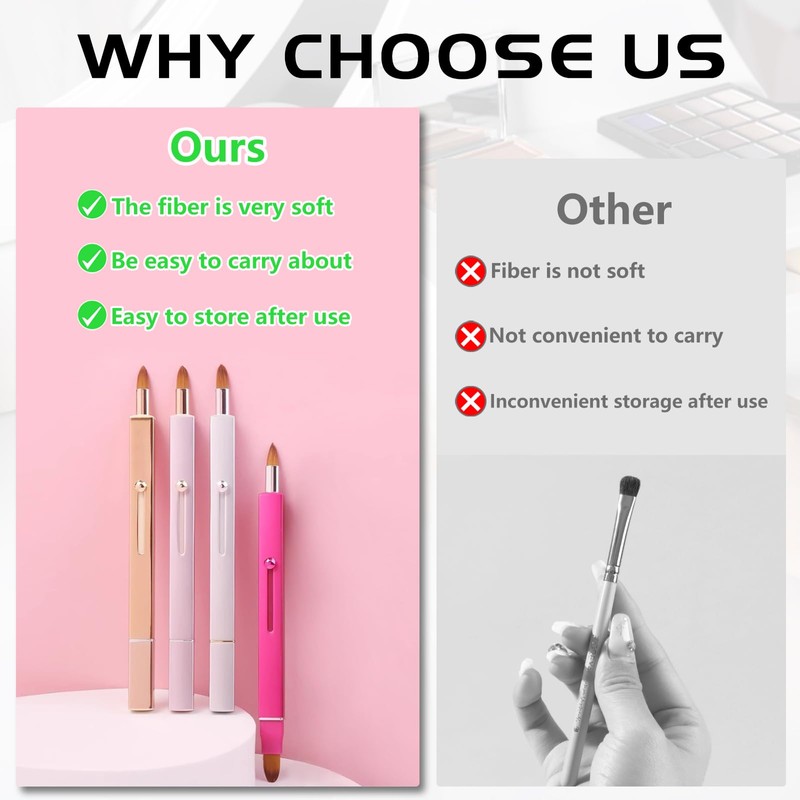 - QUALITY MATERIAL - Our retractable lipstick brush is made of quality bristles with soft and smooth touch. The metal handle is lightweight and not easy to deform. The lip brushes are made of metal handle, soft fibrous hair, eco-friendly and durable. It’s lightweight, no occupy your space, conveniently for carrying out in the bag.