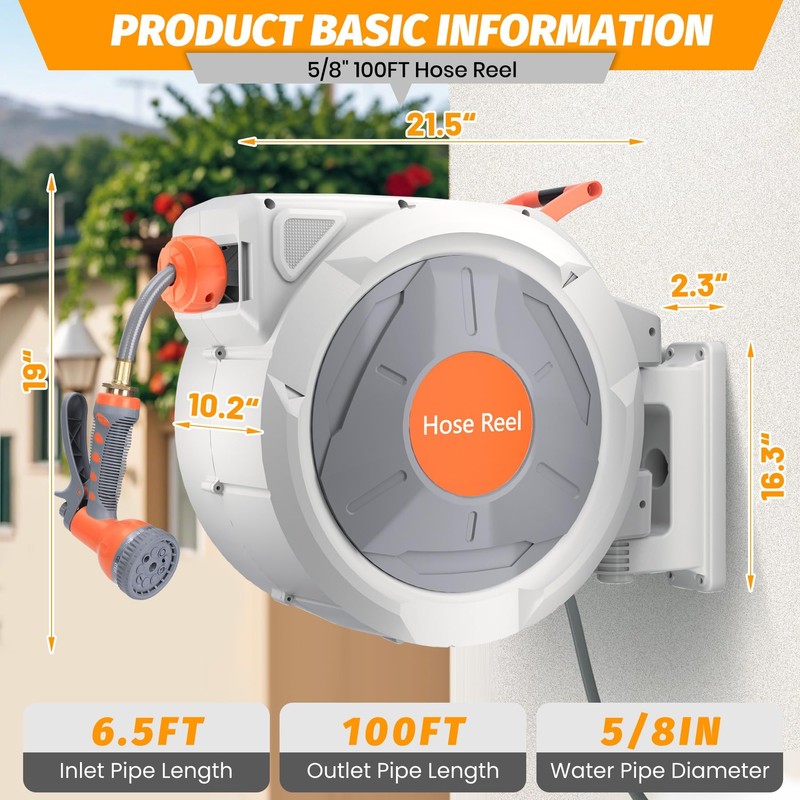 - Any Length Lock & Slow Return: Features an innovative lock system to set any hose length and a slow return mechanism to ensure safe and smooth rewinding.