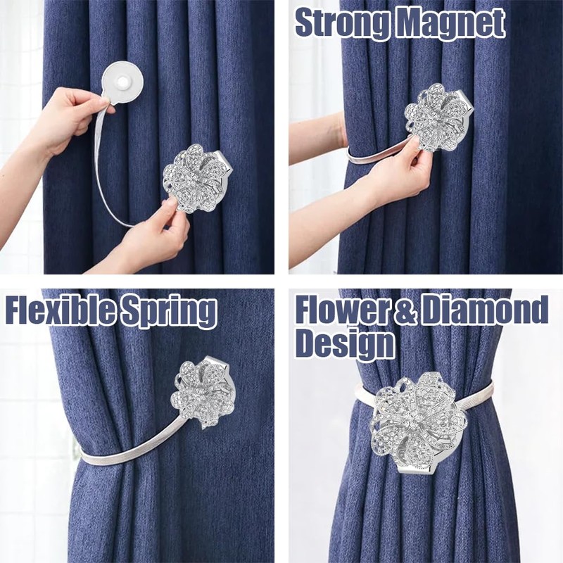 - Wide Range Of Applications: Magnetic crystal curtain clip is suitable for curtains, window screens or mosquito of various thicknesses,curtain magnetic flower tieback can be used in living rooms, bathrooms and other places
