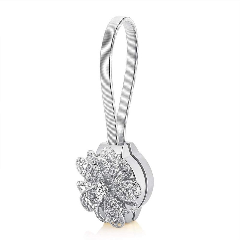 Retractable Magnetic Flower Curtain Clip Buckle Belt,Holder Tie Accessories Home Crystal Holdbacks with Stainless Steel Spring Wire Decorative Hold Backs for Office Decoration Tiebacks (Silver)