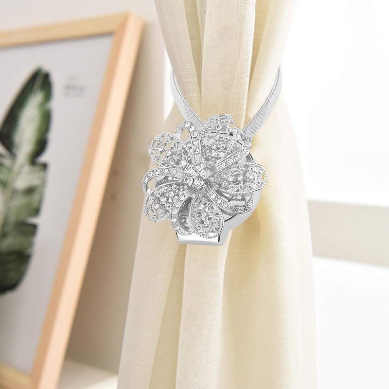 - Sparkling Crystal Flower Shape: Decorative no drilling drapery European style fashionable simple and elegant curtain tieback, retractable magnetic flower curtain clip for home office decor the best jewels to light up your home