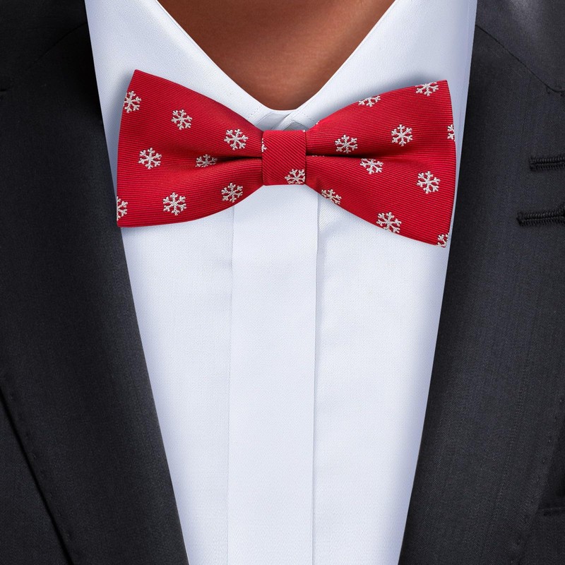Retreez Men Woven Pre-tied Bow Tie Snowflake Christmas 11.5 cm - red