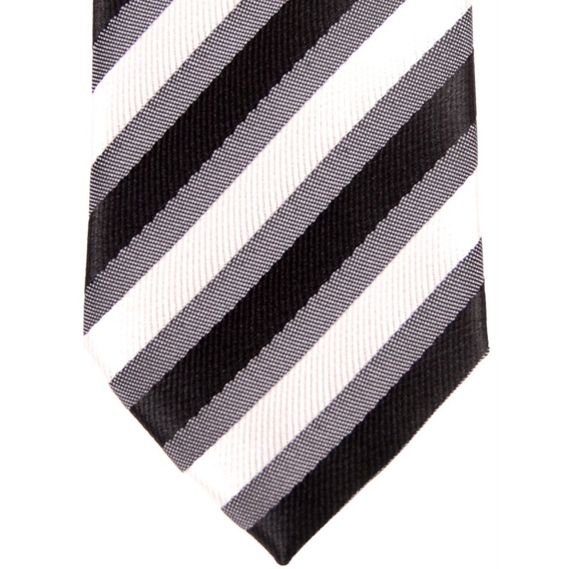 Retreez Retro Three-Color Striped Woven Microfiber Skinny Tie - Black, Grey, White