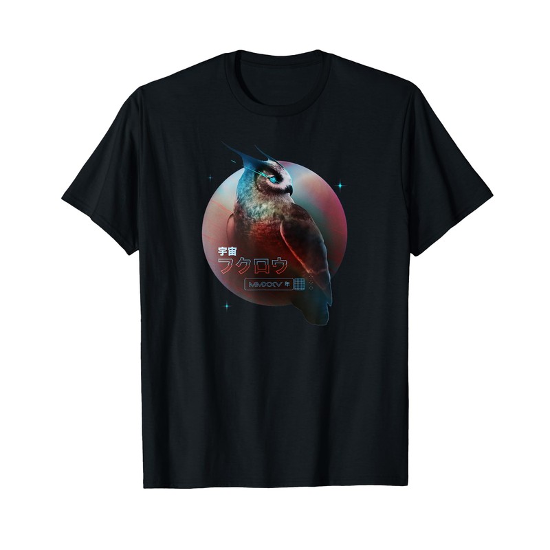 • Retro-inspired fantasy night owl graphic tee with vintage style, perfect for night lovers and fans of classic design.