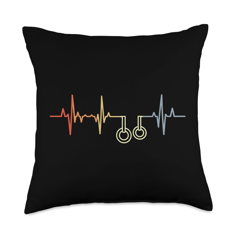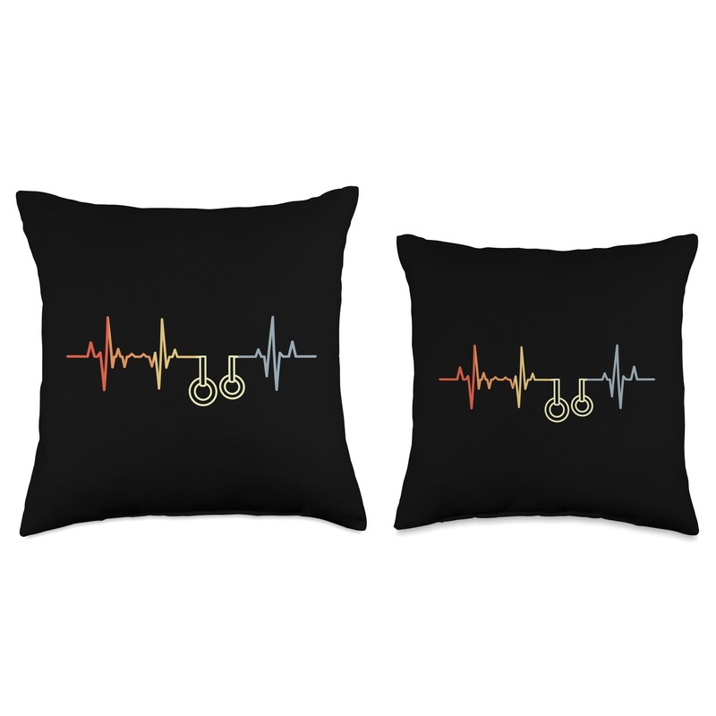 Retro Gymnastic Rings ECG Heart Rate Throw Pillow