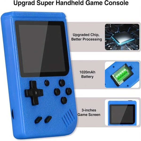 Retro Mini Handheld Game Console, 400 Games Portable Hand Held Video Game with 2.4 Inch Lcd Screen. Perfect Christmas Gift - Color: Blue, feature: Singles (handheld player)