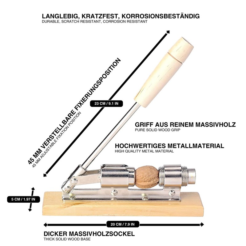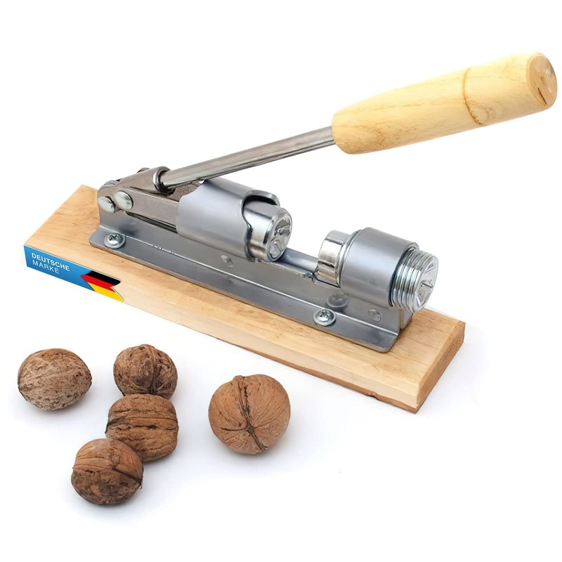- In a nutcracker in a retro look combines effective power with an elegant design and a good in the hand lever made of natural material. The warm wood is a non-slip starting point. It will be a breeze to reveal the walnuts for the Greek yogurt with honey or the almonds for the curd pie.