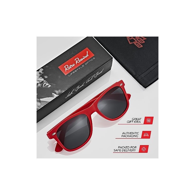 - 🕶️ Sorprende a tus seres queridos con un par de lentes retro: Cada par de lentes de sol polarizados clásicos de Retro Rewind viene con una auténtica funda de microfibra Retro Rewind y una elegante caja de regalo. Date un gusto a ti mismo o a tu esposa o novia, marido o novio, familiar o amigos con un par de lentes de sol vintage de alta calidad a un precio asequible.