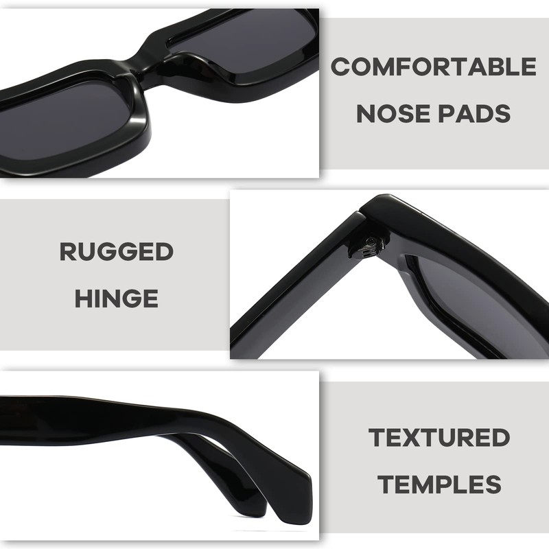 - 【Thick and Small Frame】: Thick and narrow square frame with classic integrated nosepiece design, suitable for different styles of people, can effectively block the sun and protect your eyes while driving and traveling.