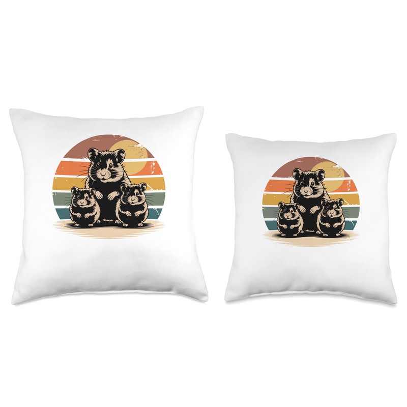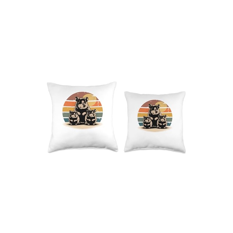 Retro Sunset Hamster Silhouette Hamsters Throw Pillow
