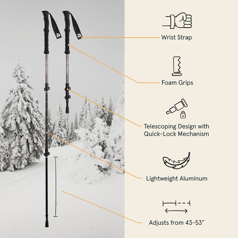 • Everything You Need: Includes 1 pair adult snowshoes, 1 pair adjustable trekking poles with multi-terrain attachments, carrying case for snowshoes and trekking poles.