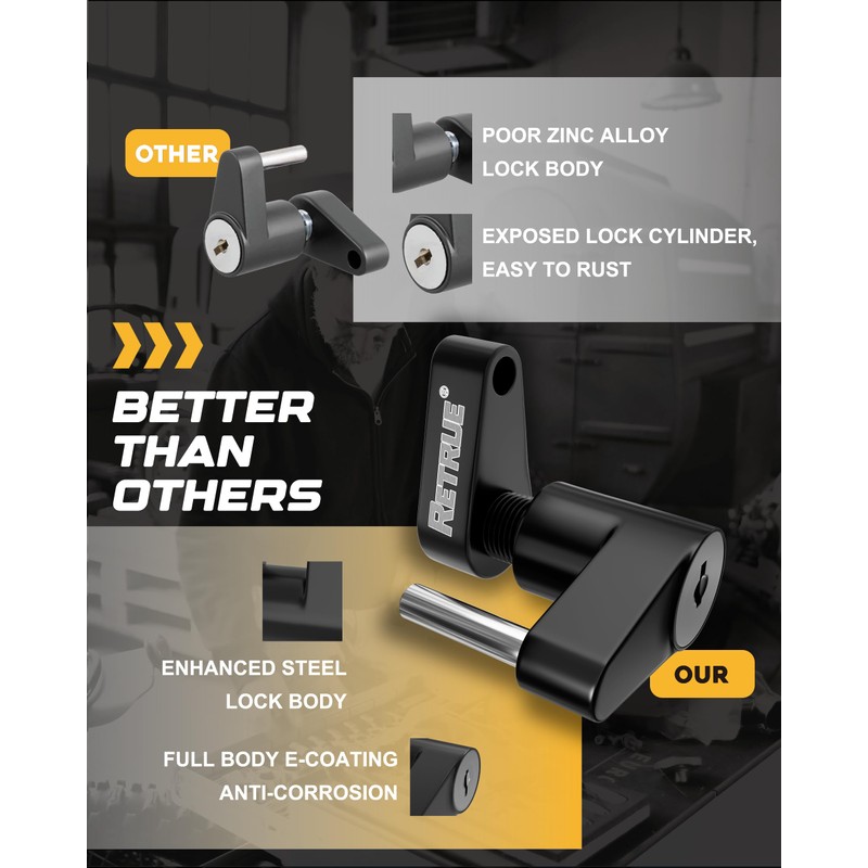 RETRUE Trailer Tongue Coupler Lock, Trailer Hitch Lock,Dia 1/4 Inch, 3/4 Inch Span for Tow Boat RV Truck Car's Coupler (Pack of 2, Black)