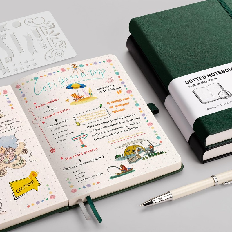 - [Versatile use] Ideal for bullet diary, travel journal, note writing, sketching, artist drawing, mood tracking, daily planner, work planner, log book, food planner and much more. The best gift for school, children, friends or work colleagues.