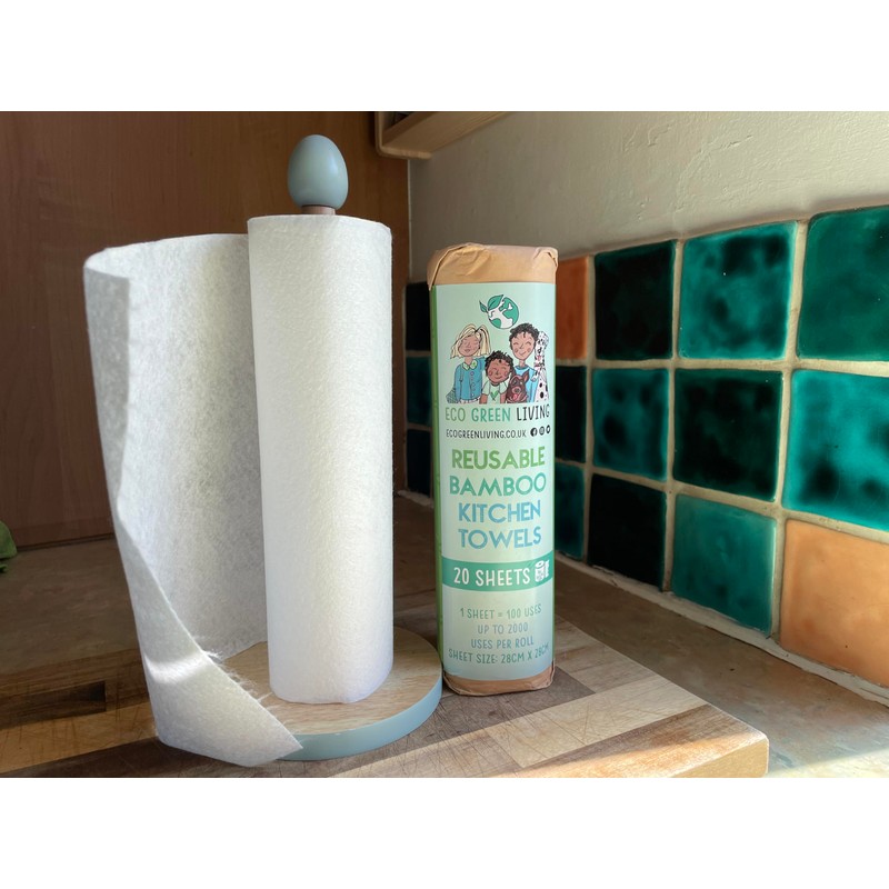 Reusable Bamboo Towels - Reusable Paper Towels for Kitchen - Up to 100 Uses Per Cloth - Quality Household Essentials/Household Supplies - Kitchen Paper Towel Roll with 20 Bamboo Sheets (28cm x 28cm