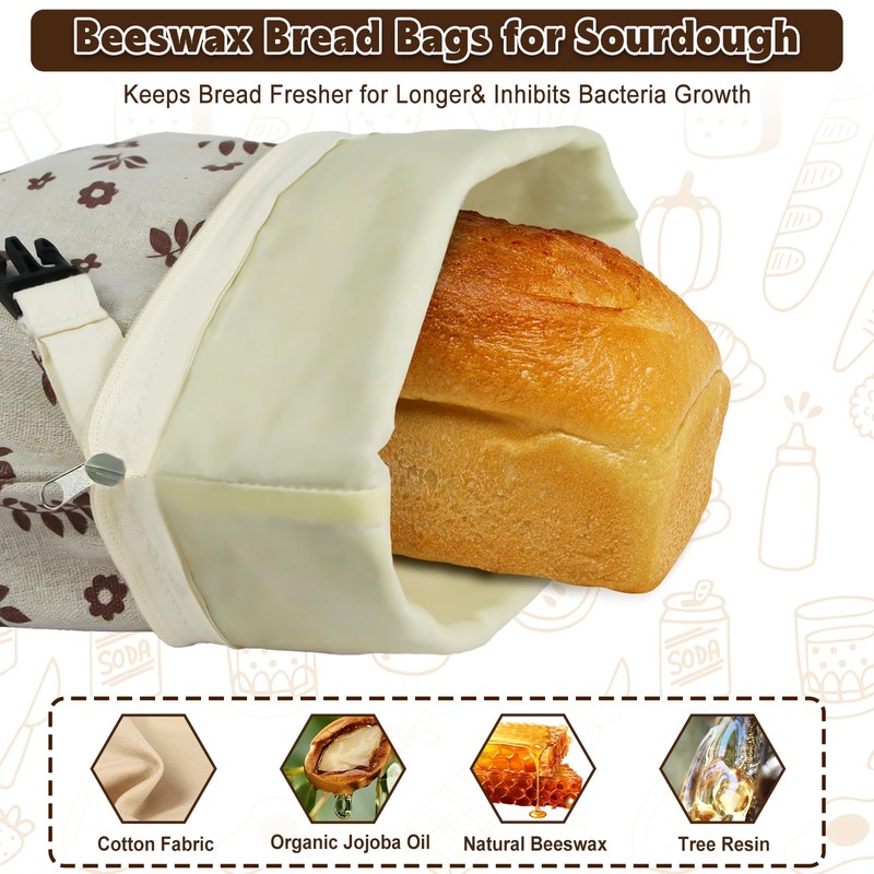 - Bread Bags for Homemade Bread: Our sourdough bread bags are made from linen and cotton, natural, durable, eco-friendly, and breathable. These beeswax bread bags for sourdough ensure safe and healthy usage, providing peace of mind for food storage