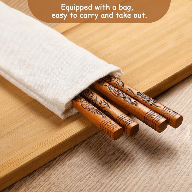 Reusable Chopsticks, Dragon and Phoenix Chopsticks Set, Chinese Style Wooden Chop sticks Gift Set (2 Pairs)