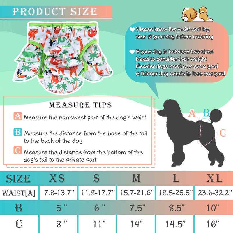 - Adjustable Size -- Strong hook-and-loop closure, easy to adjust and fit,Measure the waist right in front of the back legs for a good fit, For sizes in between, factor in weight. A heavier dog, go up a size. A skinnier dog, go down a size