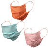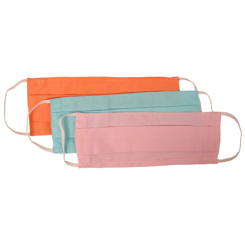 - Pack of 3. Fine cotton face masks with a pocket to insert a filter. (Filter not included). Nose bridge/wire/pin to prevent slipping. Designed for protection, comfort and breathability. Rectangular pleated style. Mask 1 - Solid Pink Mask 2 - Solid Turquoise Blue Mask 3 - Solid Orange