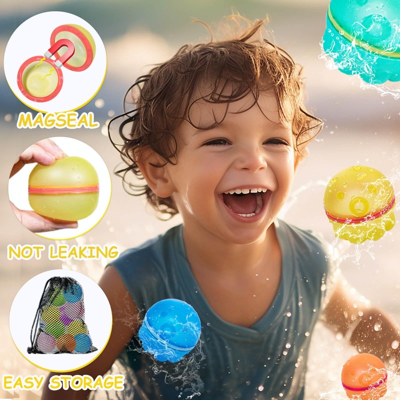 • Safe and Worry-free: The summer water balloons are made of food-grade silicone,odorless and harmless,safty even be bitten by children.Very soft high quality silicone with a smooth surface,not hurt when it hits body.Micro magnets are 100% embedded inside thickened edges with adhesive,preventing children from accidentally swallowing them.