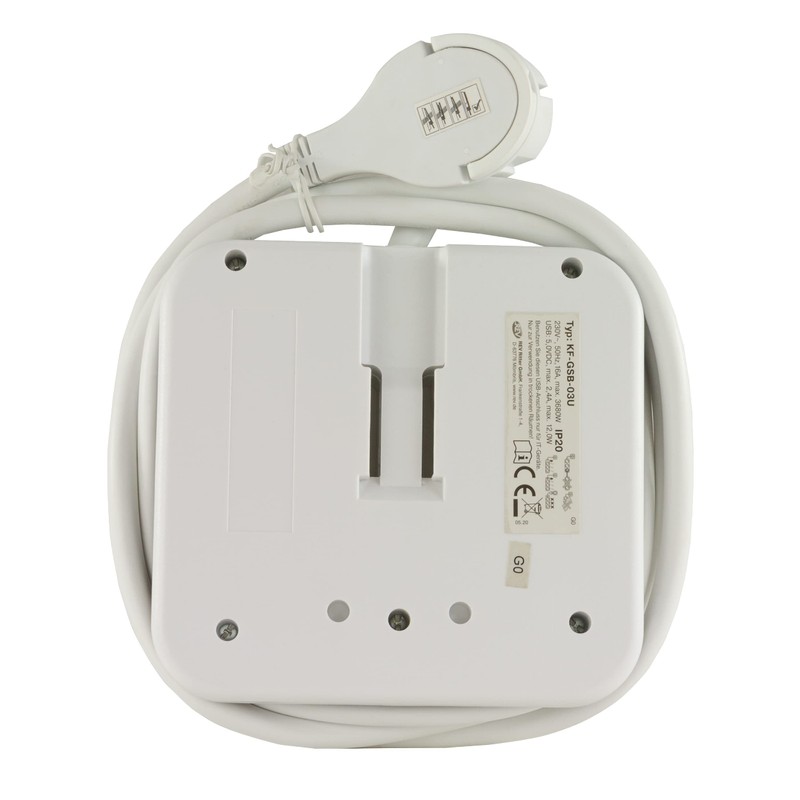 - The multiple socket has a recessed recess in the housing on the side, which serves as a cable safe