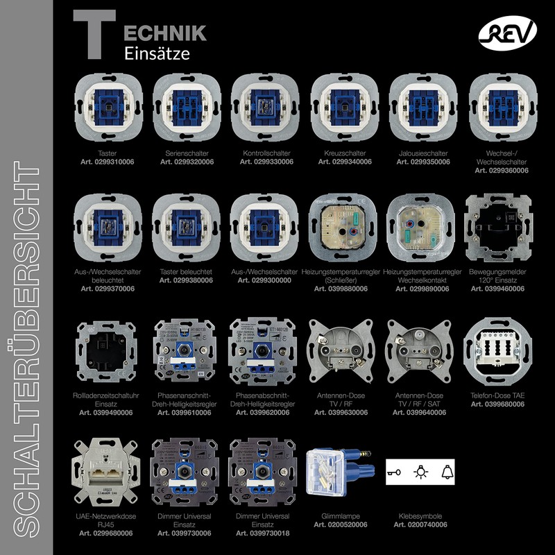 - Suitable for the cover of the Studio switch series is the REV Technik series: motion detector (0399460006)