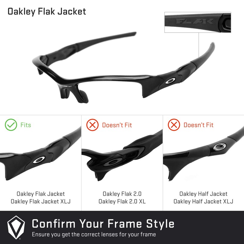 • Precision-Cut - Replacement lenses compatible with Oakley Flak Jacket sunglasses are guaranteed to fit frames with the model number OO9008, found on the inside temple arm.
