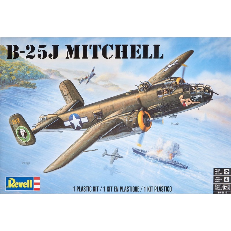 One of the most widely used twin-engine bombers employed during the war, the B-25 incorporated the use of 5 nose-mounted .50 cal. machine guns for a ground support role. Features: Machine guns mounted in glass nose, weighted tires and figures, waterslide decals. 1:48 Scale. Skill Level 4 - requires paint and glue (not included).