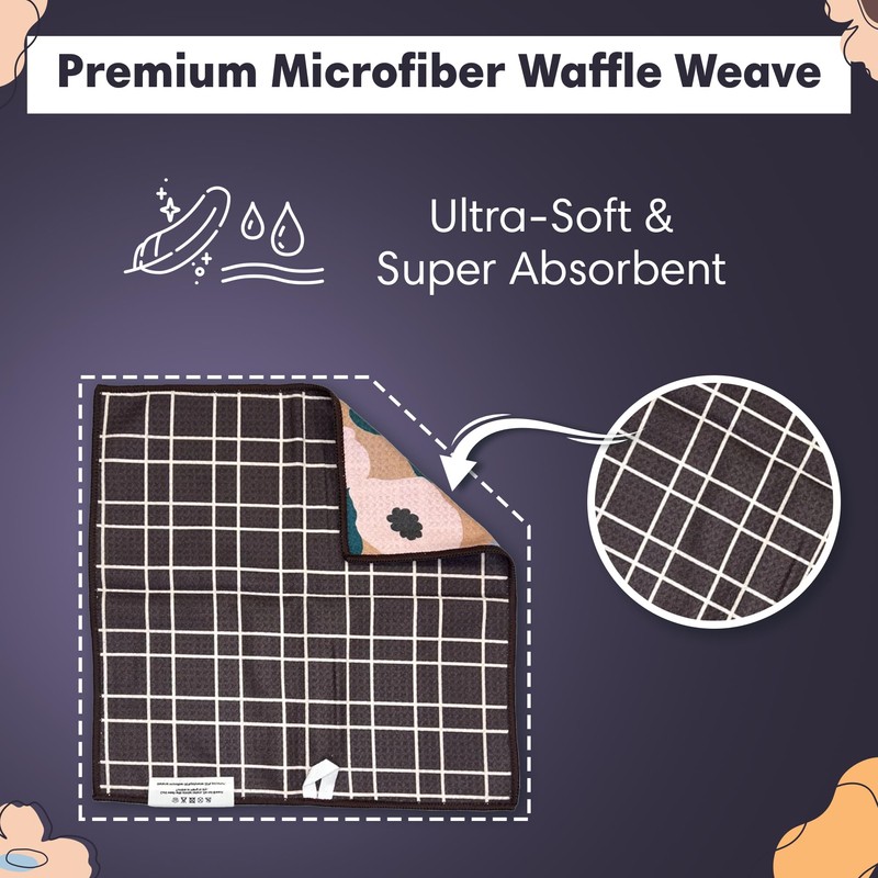- Reversible Double-Sided Design – Our 12x12-inch microfiber washcloths feature a floral pattern on one side and a geometric pattern on the other, combining style with function. The waffle weave microfiber texture ensures maximum absorption for efficient cleaning.