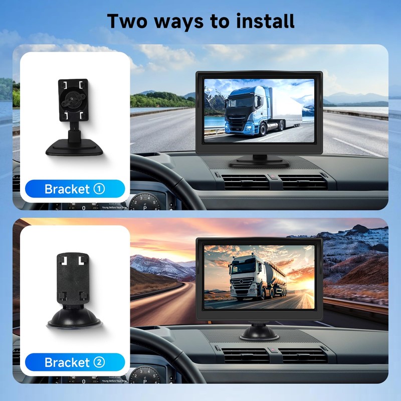 【Easy installation method】: There are two power supply methods to comprehensively meet the requirements of different people. The monitor supports simultaneous input of two camera images. The voltage of 9-36V is suitable for most cars.