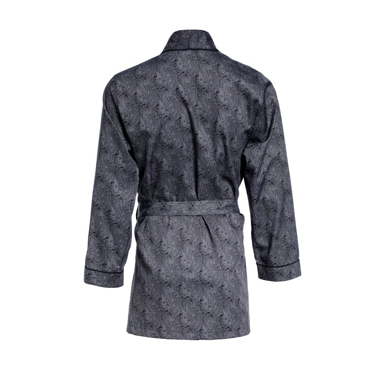 Revise Men's Dressing Gown Short Dressing Gown RE-509 Elegant 100% Cotton (Re-509) - Black with grey pattern, size: l