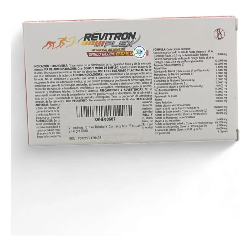 Revitron Plex Suplemento Alimenticio C/30 Caps Gelpharma Sin Sabor