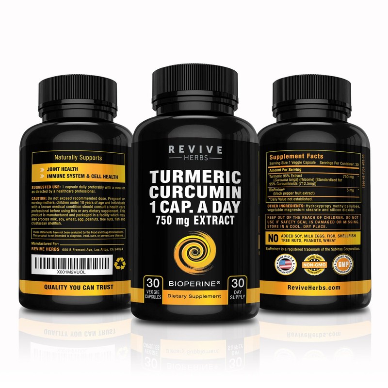 Revive Herbs Pure Turmeric Curcumin with Bioperine. Super Strength. One Capsu...