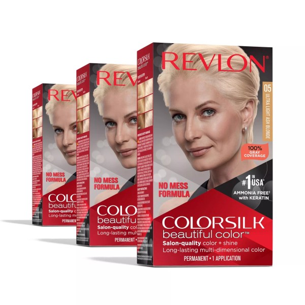 Revlon ColorSilk Beautiful Color Ultra Light Ash Blonde Hair Dye Pack of 3