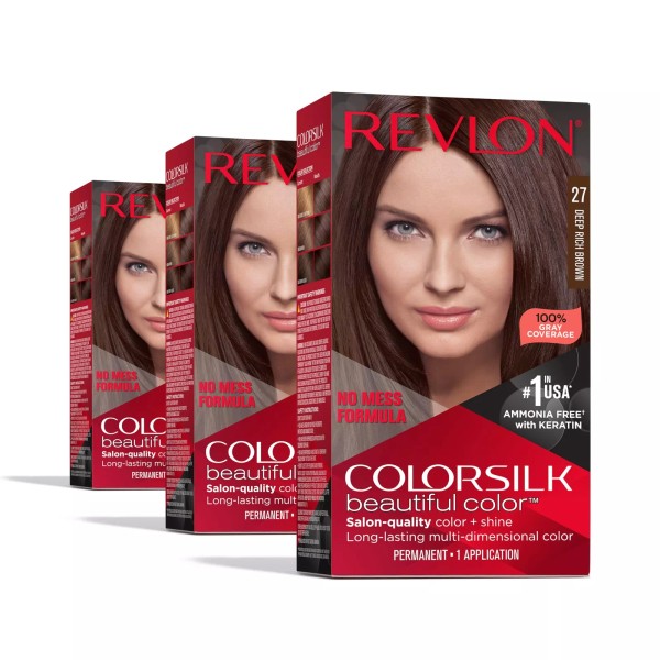 Revlon ColorSilk Permanent Hair Dye 3 Pack Deep Rich Brown 100 Gray Coverage