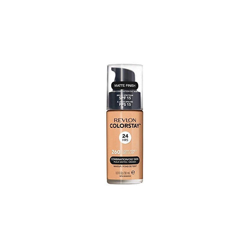 Revlon ColorStay Liquid Foundation Makeup for Combination/Oily Skin SPF 15, Longwear Medium-Full Coverage with Matte Finish, Light Honey (260), 1.0 oz