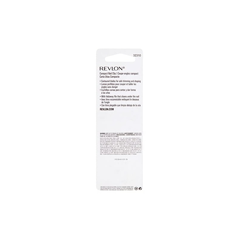 Product Description The ideal nail clip to tuck away in a purse or travel kit. Contoured, lever-action blades trim nails safely and easily with either hand. Includes a foldaway file to shape, smooth, and gently clean under nails. From the Manufacturer Revlon Compact Nail Clip trims and shapes nails quickly and easily on the go