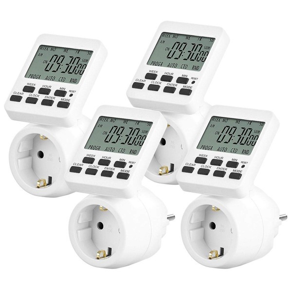revolt Digital Timer Socket: Set of 4 Digital Timer Switches with 180° Rotating LCD Display (Timer Socket Digital, Digital Weekly Timer, Timer Switch)